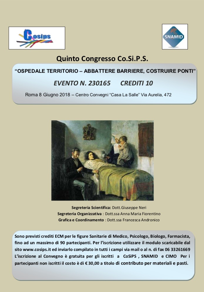 Sabato 9 giugno si è concluso il Quinto Congresso Co.Si.P.S. “Ospedale Territorio – Abbattere barriere, costruire ponti” che si è tenuto, come da tradizione. presso il Centro Convegni “Sala La Salle” di Roma.